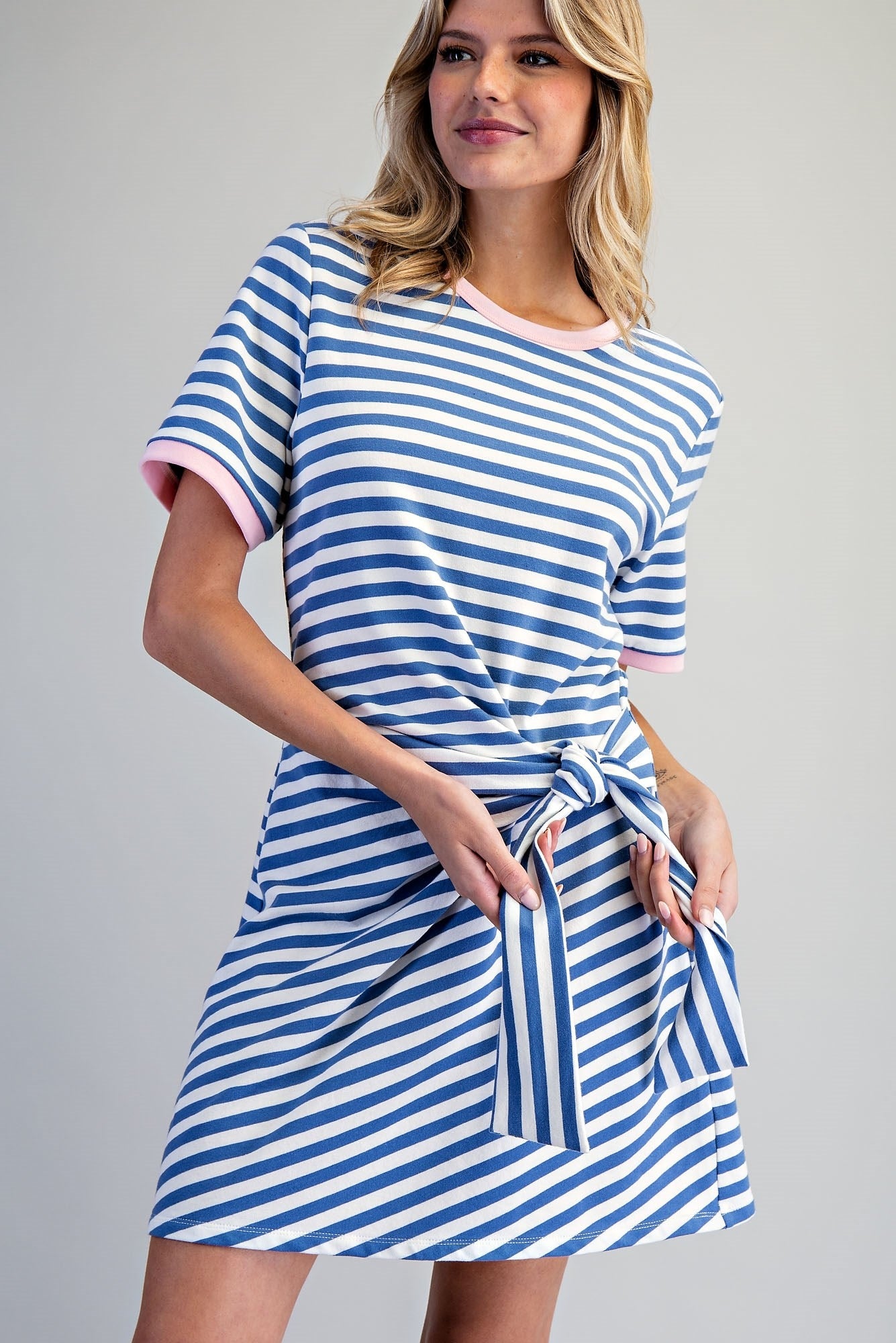 Blue Striped Waist Tie Dress